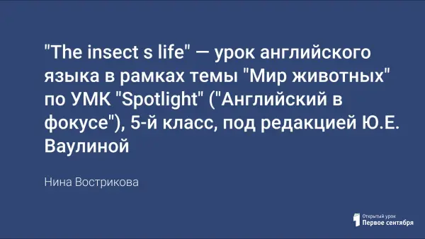 Данный урок смоделирован в технологии критического мышления через чтение и письмо. В ходе учебного занятия учащиеся работают с познавательным текстом о жизни насекомых. Урок предполагает включение в активный процесс обучения учащихся с разными способностями за счет использования парной, групповой, фронтальной работы. Урок формирует навыки работы с текстом, умение выразить свое отношение к поставленной проблеме.