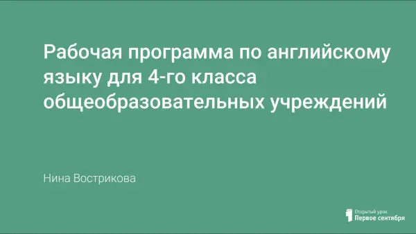 Данная программа предназначена для работы с учебником английского языка для 4-го класса общеобразовательных учреждений под редакцией С.Г. Тер-Минасовой, Л.М. Узуновой, Е.И. Сухиной, Ю.О. Собещанской. Программа соответствует утвержденному стандарту начального образования по иностранному языку.