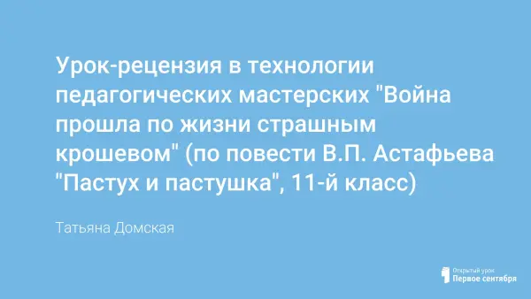 Урок рассчитан на 2 часа и предполагает на основе домашнего чтения анализ текста на уроке (групповые задания), а также обращение к прошлому семьи учащихся (через старые фотографии, сохранившиеся письма с фронта, вырезки из фронтовых газет, воспоминания родителей, семейные реликвии).