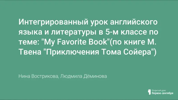 Интегрированный урок английского языка и литературы в 5-м классе по теме: "My Favorite Book"(по книге М. Твена "Приключения Тома Сойера")