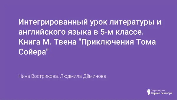 Интегрированный урок литературы и английского языка в 5-м классе. Книга М. Твена "Приключения Тома Сойера"