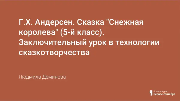 Урок проводится после знакомства со сказками Андерсена и представляет собой "сказочное путешествие по сказке". Учащиеся идут вслед за любимыми героями сказки и при этом фантазируют, вспоминают отдельные детали, интерпретируют эпизоды глазами других действующих лиц, размышляют над проблемами, основываясь на своем жизненном опыте, и даже пытаются адаптировать сказочных героев в нашем времени.