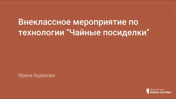 Внеклассное мероприятие по технологии для обучающихся 5–6-х классов "Чайные посиделки ". Цель данного мероприятия: возрождение традиций русского гостеприимства. Такие мероприятия активизируют деятельность обучающихся, способствуют развитию интереса детей к традициям чаепития разных народов.