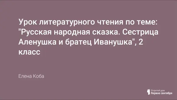 Урок литературного чтения по теме: "Русская народная сказка. Сестрица Аленушка и братец Иванушка", 2 класс