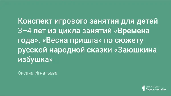 Цель занятия: знакомство со временем года «весна», его признаками и явлениями природы, введение понятий «зима»–«весна», развитие коммуникативных навыков, чувства эмпатии.