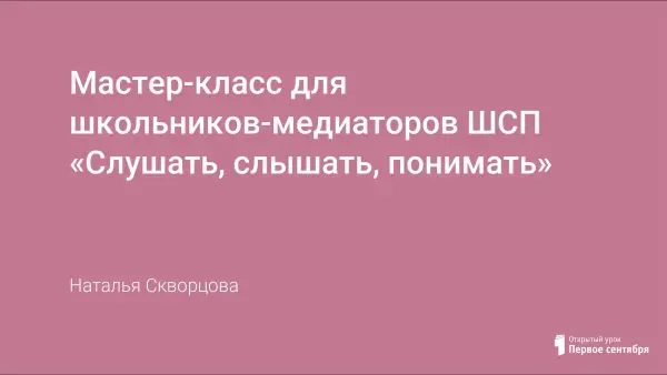 Цель мастер-класса: помочь участникам осознать важность умения слушать и слышать в процессе работы медиатором ШСП; помочь в овладении правилами хорошего слушания, побудить к работе над собой.