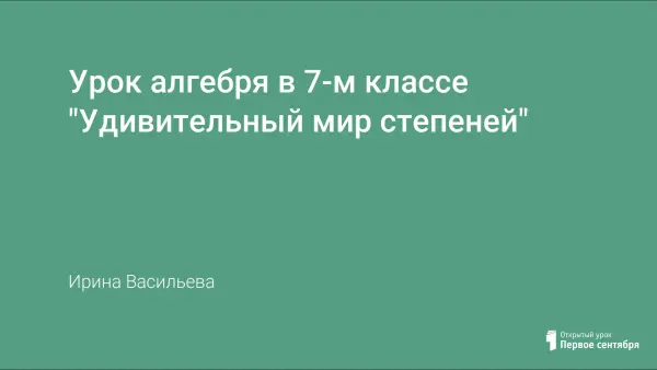Урок алгебры "Удивительный мир степеней" является заключительным по теме "Степень с натуральным показателем" и преследует следующие цели: активизация знаний, умений и навыков по теме; расширение информационной сферы у учащихся, закрепление и уточнение узловых вопросов темы; формирование умений самостоятельного поиска информации; воспитание адекватности и самокритичности в оценке собственных знаний.