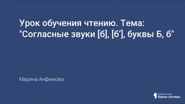 Дидактическая цель урока: познакомить обучающихся с согласными звуками [б], [б’] и буквами Б, б.