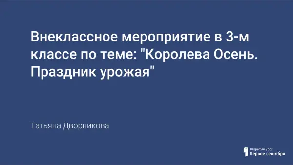 Статья представляет сценарий внеклассного мероприятия "Королева Осень. Праздник урожая", призванного воспитывать у младших школьников интерес и любовь к родной природе, и чувство гордости за свое Отечество, за свой родной край – Дагестан, прививать любовь к народным традициям, уважать обычаи родного края, воспитывать уважение к труду.