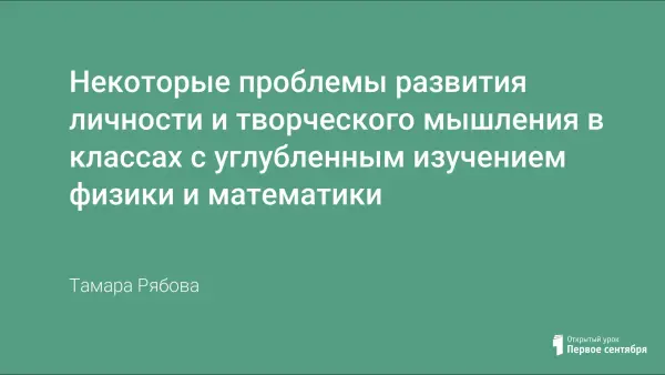 В классах с углубленным изучением физики и математики необходимо не только обучать, но и больше времени уделять развитию личности учащихся, осознанному воспитанию у них творческого мышления, решению проблем их социализации.