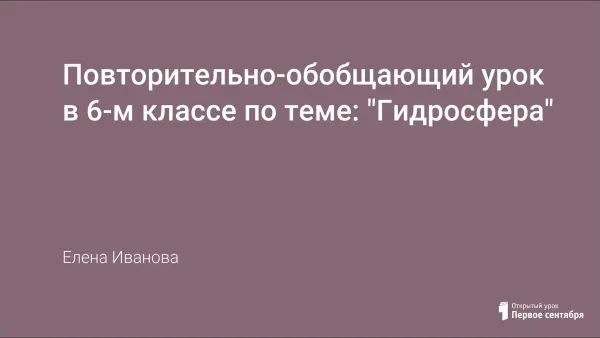 Повторительно-обобщающий урок в форме игры - достаточно широко используемый вид урока в курсе географии 6 класса. Мы предлагаем урок в виде сказки. Говорят: "Сказка - ложь, да в ней намек, добрым молодцам - урок". Наша сказка - это правдивое, научное прочтение темы "Гидросфера". Практика показала, что такая сказка - это действительно "шестиклассникам - урок".