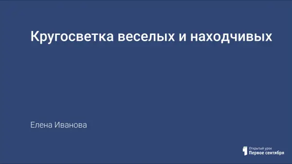 Когда-то популярные географические КВНы переживают вторую молодость. Свежую струю в эту форму работы внесли информационные технологии, ведь происходящее действо можно не только озвучить, но и сопроводить мультимедийной презентацией, слайд-шоу, видеороликами. Наша "Кругосветка" - не просто набор разнообразных конкурсов и испытаний, а настоящее виртуальное путешествие в мир знаний.