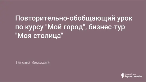 Предлагаемый повторительно-обобщающий урок по курсу "Мой город" - это урок-путешествие по родному городу. Нестандартная форма проведения урока даёт возможность ученикам применить свои знания на практике, проявить свои способности: смекалку, предприимчивость, умение работать в команде.