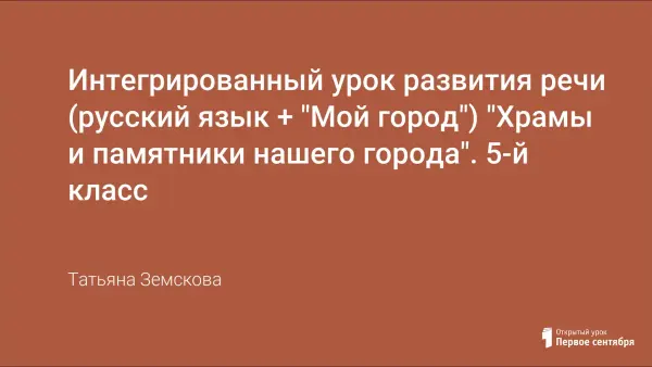 Интегрированный урок развития речи дает возможность ученикам познакомиться с лексическим значением слов "храм" и "памятник"; помогает воспитывать стремление обращать внимание на непонятные слова, узнавать их значение в словаре и обогащать свою речь.