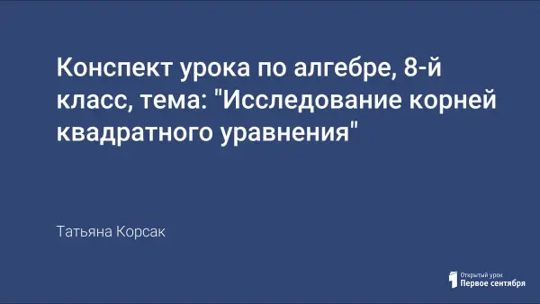 Урок изучения нового материала построен по типу проблемного обучения. На данном уроке учащиеся под руководством учителя исследуют влияние знаков коэффициентов квадратного трехчлена на количество его корней, составляют алгоритм решения квадратного уравнения.
