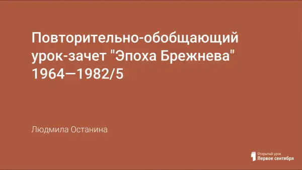 Урок проводится в 11-м классе после изучения темы "СССР в середине 1960-х - середине 1980-х годов" в одной из активных современных технологий "Уголки". Используется комплекс методов: репродуктивный, объяснительно-иллюстративный, частично-поисковый, проблемный. Формы организации учебного занятия: индивидуальная и групповая. Ожидаемый результат: усиление мотивации к самостоятельному познанию и обогащение социального опыта учащихся.