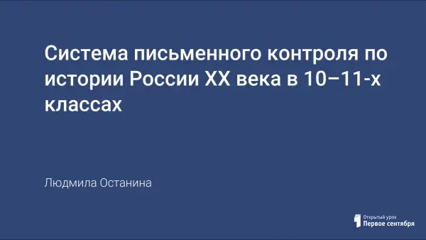 Статья посвящена системе письменного контроля на уроках по истории России ХХ века в старших классах средней школы. Приведены образцы заданий к контрольным работам и творческим проектам с комментариями.