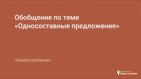 Цели урока: повторить и систематизировать изученный материал об односоставных предложениях; учиться различать их виды.