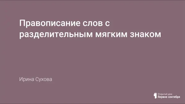 Цели урока: формирование умений произносить и правильно писать слова с разделительным мягким знаком, воспитывать чувства сопричастности к сохранению самобытности и частоты русского языка, стремления познавать свойства родного слова и совершенствовать свою речь.