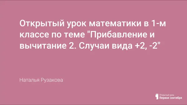 Цели урока: познакомить детей с приёмами прибавления и вычитания числа 2; продолжить работу над усвоением последовательности чисел натурального ряда, над примерами в два действия, над сравнением чисел.