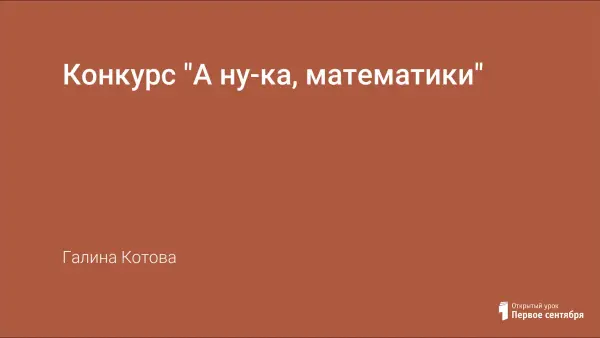 В конкурсе "А ну-ка, математики!" принимают участие одновременно две команды: 6-х и 7-х классов. В каждом туре команды получают по заданию, для выполнения за определенное время. Конкурс можно проводить на каникулах в качестве внеклассного мероприятия по математике для учащихся 6-7-х классов.