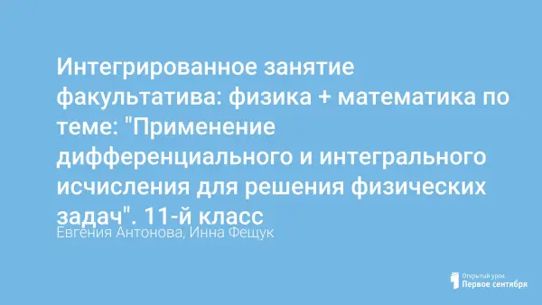 Интегрированное занятие факультатива: физика + математика по теме: "Применение дифференциального и интегрального исчисления для решения физических задач". 11-й класс