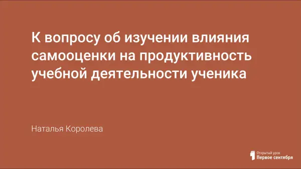 Общеизвестно, на продуктивность обучения большое влияние оказывает самооценка обучаемого, которая формируется через оценку окружающих (родителей, учителей, сверстников). Важно, чтобы учитель формировал у учащихся адекватную самооценку, поддерживая тем самым учебную мотивацию, а следовательно и продуктивность учебной деятельности.