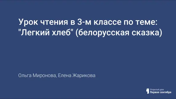 Урок чтения в 3-м классе по теме: "Легкий хлеб" (белорусская сказка)
