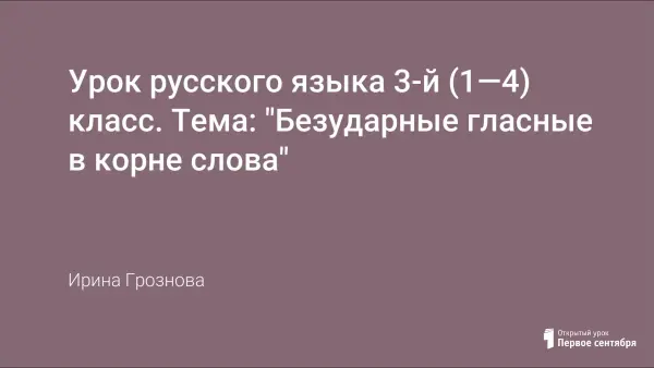 Обучение в 1 классе строилось по методике Илюхиной. Работа по формированию графических навыков во втором и третьем классах продолжалась на минутках чистописания. Некоторые из приемов показаны в предложенном уроке. Тема "Безударные гласные" чрезвычайно актуальна в обучении русскому языку. Мне хочется показать один из уроков по этой теме.