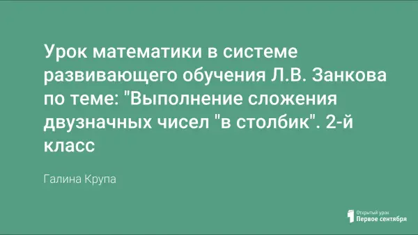Урок разработан на основе дидактических принципов развивающей системы Л.В. Занкова. В непринужденной форме, используя исследовательские, игровые приемы обучения, дети знакомятся с решением примеров "в столбик". Важным условием развития учащихся является доброжелательная обстановка на уроке, позволяющая детям испытывать чувство успеха.
