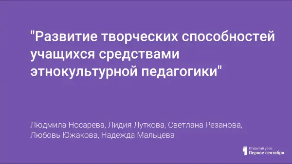 Представлен конспект урока "Развитие творческих способностей учащихся средствами этнокультурной педагогики".