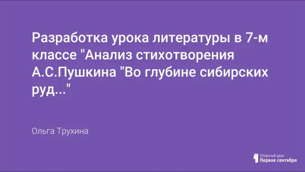 Цель урока: проанализировать стихотворение А.С.Пушкина «Во глубине сибирских руд» (история создания стихотворения, анализ лексики и используемых художественно-изобразительных средств; определение темы и идеи).