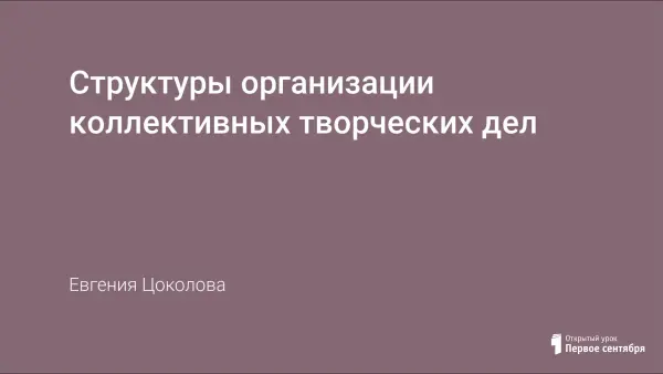 Представлено описание опыта и систематизация деятельности старшей вожатой по организации коллективных творческих дел. Разработаны структуры организации КТД на основе анализа педагогической литературы и обобщения опыта работы. Данные структуры позволяют упорядочить, разнообразить внеурочную деятельность. В статье есть и теоретическое описание и примеры.