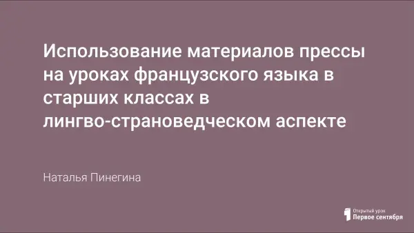 Работа с материалами прессы позволяет учащимся знакомиться с новыми явлениями, характерными для состояния языка на сегодняшний день, узнавать страноведческие и бытовые реалии современной духовной жизни страны. Сопоставляя факты и материалы русской и французской прессы, ученики получают средства адекватного вербального выражения реалий жизни своей страны. Работа с прессой позволяет широко использовать приёмы презентации учебных материалов, разработанные французскими специалистами, а так же технологии французских мастерских и проектной методики.