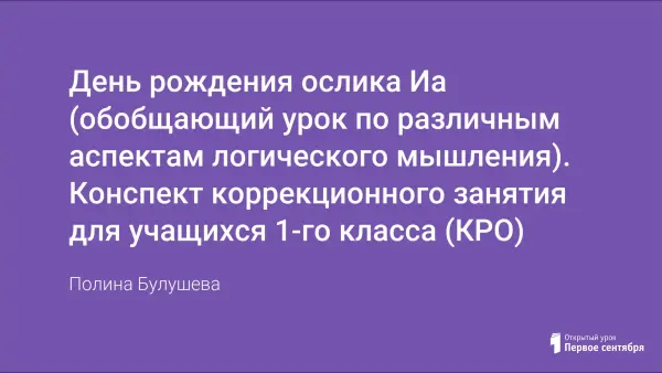 Конспект коррекционного занятия для учащихся 1-го класса (КРО).