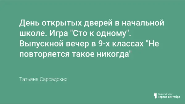 Школьные годы занимают особое место в жизни каждого человека. Школа - это не только знания, но ещё и общение. Именно в школе происходит взросление, становление личности, дети учатся дружить, любить, общаться со сверстниками и со взрослыми. Традиционными мероприятиями в школах являются "Выпускной вечер" и "День открытых дверей". Данные разработки являются примером того, как можно организовать мероприятия для детей и взрослых, у которых один и тот же первый учитель.