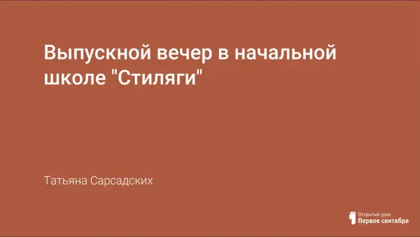 Заключительным аккордом на первой ступени обучения становится выпускной вечер. Педагог старается подготовить такой праздник, которого не было еще никогда. Учитываются особенности учащихся, способности родителей, расширяющиеся возможности техники, новые технологии, модные тенденции. Представлен результат совместной четырехлетней деятельности по формированию навыков сотрудничества и сотворчества.