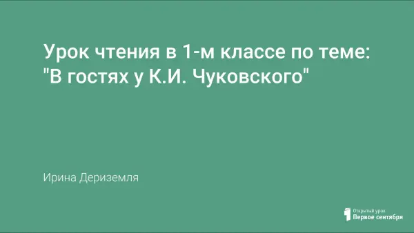 Урок чтения в 1-го классе по теме " В гостях у К.И.Чуковского" построен с учетом психо-физиологических особенностей возраста младших школьников. Направлен на активизацию и развитие творческого потенциала учащихся, интереса к чтению, а именно к произведениям К.И. Чуковского.