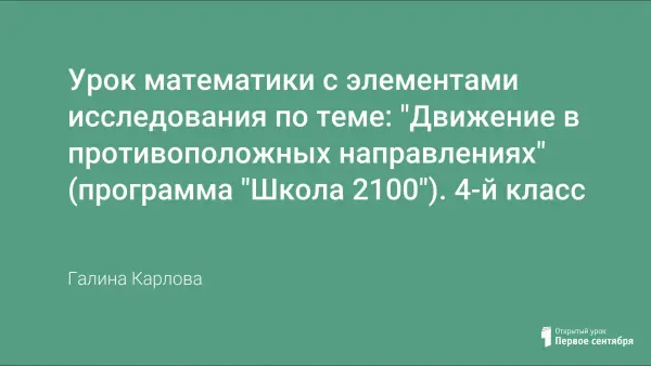 Урок математики в санаторном классе построен с учетом индивидуальных особенностей детей. Это урок "открытия" нового знания, на котором предполагается исследовать изменение расстояния между двумя движущимися объектами в противоположных направлениях; вывести алгоритм нахождения расстояния, а также закрепить решение задач на встречное движение, используя метод мини-проектов.