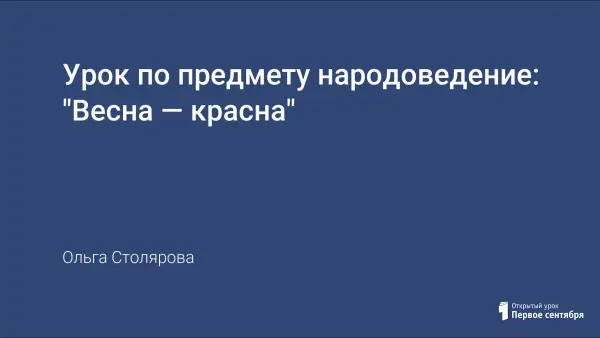 Данный урок знакомит детей с народными обычаями и обрядами встречи весны. Знакомство с поэтическим воззрением славян на природу, поможет - воспитывать подрастающее поколение в духе уважительного и бережного отношения к природе, к окружающему миру, к людям, живущим рядом, к культурному наследию России. Урок может быть использован как внеклассное мероприятие.