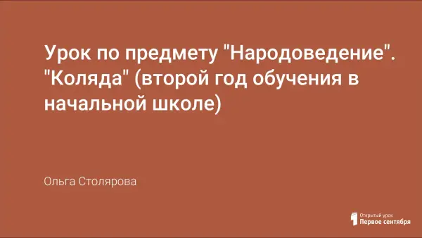 Урок составлен на основе программы Лазарева А.И. «Фольклор. Художественное самотворчество детей». Предназначен для учащихся 2-го года обучения, но может использоваться во внеклассной работе при проведении народных праздников для детей любого возраста. Главная идея урока – урок-праздник: все варианты творческих заданий, выполняемых на уроке необходимы для дальнейшего применения их в сценарном ходе Колядок. С помощью чего дети не остаются пассивными наблюдателями за происходящим, а становятся непосредственными участниками праздничного действия.