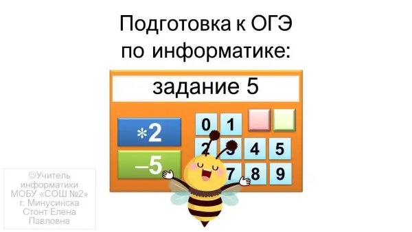 Презентация к занятию по подготовке к ОГЭ по информатике с разбором задания № 5 («Анализировать простые алгоритмы для конкретного исполнителя с фиксированным набором команд», Спецификация КИМ ОГЭ по информатике, 2026 г.). Презентацию можно использовать учителю для разбора заданий на занятии и ученику для самостоятельной подготовки к экзамену.