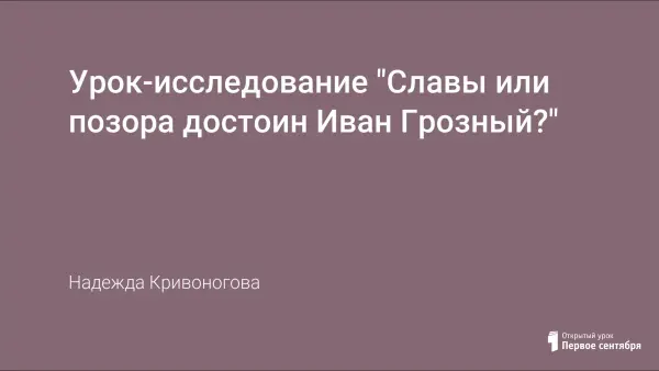 Через материалы урока, работу с фрагментами исторических источников решается проблема выработки у школьников представлений о неоднозначности событий и оценки личности в истории. На примере деятельности Ивана IV учащиеся подводятся к мысли о том, насколько богата цветовая палитра истории, на уроке идёт формирование ценностных ориентаций и убеждений учащихся на основе личностного осмысления событий.