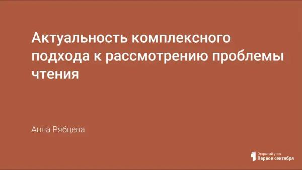 Актуальность комплексного подхода к рассмотрению проблемы чтения