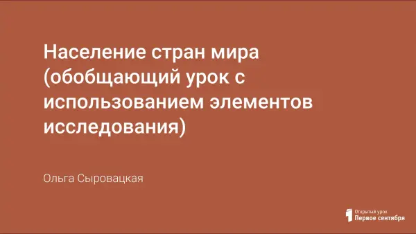 Урок предназначен для учителей географии при обобщении темы "Население стран мира". В него включены разнообразные вопросы по проверке знаний программного материала, умению проводить исследовательскую работу, а также дополнительный материал, который развивает интерес к предмету.