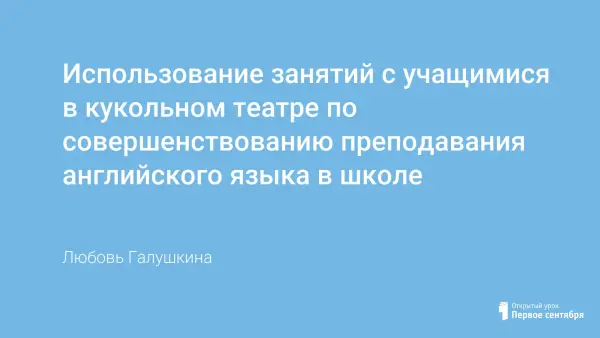 Автором данной статьи была поставлена задача - создания единой системы учебной и внеклассной работы с использованием занятий детей в кукольном театре, по совершенствованию преподавания английского языка в школе, на основе игровой формы проведения уроков и внеклассных занятий. Такая форма проведения учебных занятий формирует у школьников потребность общения с искусством, развитие творческих способностей при изучении английского языка.