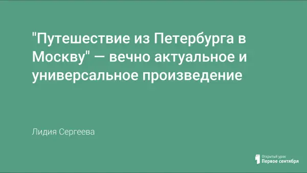 Четыре года назад открыла для себя "новое" "Путешествие из Петербурга в Москву". Теперь изучаю с детьми, кроме традиционных, обозначенных в программе, и главы "Чудово", "Подберезье", "Новгород", "Крестцы", "Едрово". После прочтения и обсуждения глав "Путешествия" делаем вывод об энциклопедичности произведения и его актуальности даже для нашего времени, о его универсальности.
