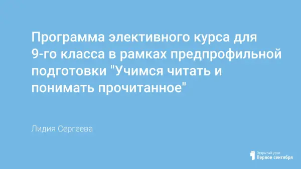 Программа предлагаемого элективного курса ориентирована на подготовку читателя, способного оценить произведение в единстве формы и содержания. Занятия по данной программе также помогут учащимся в подготовке к письменным экзаменам в 9—11-х классах.