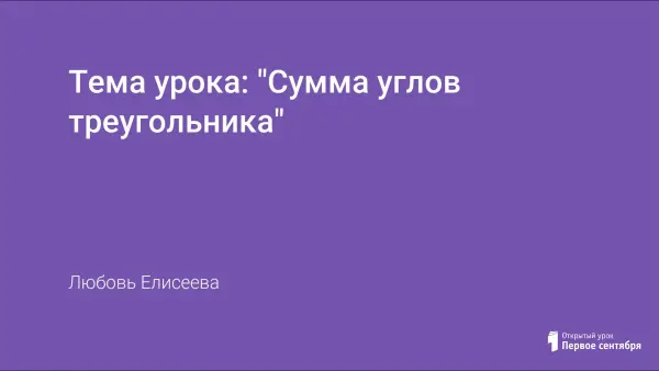 Тема урока: "Сумма углов треугольника"