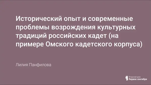 Исторический опыт и современные проблемы возрождения культурных традиций российских кадет (на примере Омского кадетского корпуса)